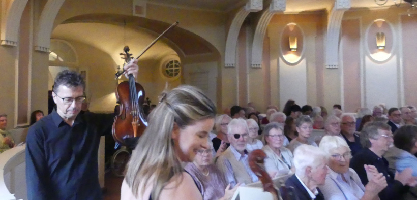 Traditionell findet eines der beiden Sommerakademie-Abschlusskonzerte im Kloster Medingen statt, weshalb Hinrich Alpers es nicht versäumt, der Hausherrin, Äbtissin Dr. Püttmann, mit einem Blumenstrauß Dank zu sagen. Dafür, dass einige Studenten ihre Unterrichtsstunden dort absolvieren und dass in der kleinen Kirche das Konzert stattfinden darf. Es geht immer recht eng zu; aber mit den Jahren haben sich Gäste und vor allem das Orchester, das Kammerorchester Wratislavia aus Wrocław, wohl daran gewöhnt. –  Die vorletzte Runde also, ist die Woche voller wunderbarer Musik wirklich schon wieder vorbei? Den Zuhörern brachten diese Tage staunenswerte Hörerlebnisse und Begegnungen mit jungen und ganz jungen Instrumentalisten, die anrührten und zu überzeugen wussten durch die Ernsthaftigkeit ihres Tuns.