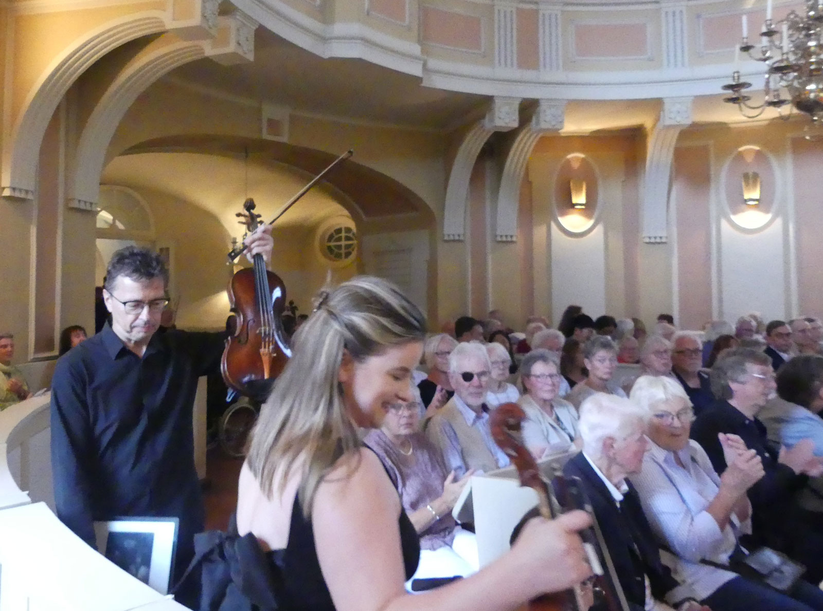 Abschließend begleitete das Kammerorchester  Kateryna Markina (Ukraine/17) für das Allegro aus Mozarts Violinkonzert A-Dur KV 219. Es ist das anspruchsvollste der fünf Violinkonzerte des Komponisten; nach dessen Vollendung verweigerte sich der Salzburger diesem Instrument. Diese Noten sind eine Klangdroge auch schon im ersten Satz voller elektrisierender Spannung. Im Spiel ließen die enge Verwebung zwischen Solo und Tutti keine Wünsche offen. Ein gelungener und schöner Abschluss dieser zwei Konzertstunden in Medingen. Das Publikum verließ sicherlich sehr zufrieden das Haus.
