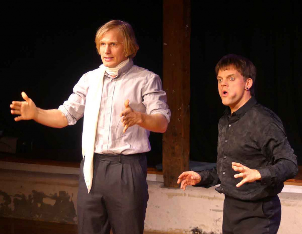 Am Ende standen sie erschöpft: Paul Schröder und Jirka Zett. Ja, Klassiker sind anstrengend! Sie hatten sich mental und physisch abgearbeitet, es war ein Marathon. Mindestens. Friedrich Schillers schräge Gespenstergeschichte „Der Geisterseher“, stand auf dem Programm. Mit der der Schriftsteller den Zeitgeschmack bediente und von dem er meinte: „Soviel ist indessen gewiß, daß ich mir diesen Geschmack des Publikums zu Nutzen machen und so viel Geld davon ziehen werde, als nur immer möglich ist.“ Dass er am Ende die Lust verlor, bescherte uns das Romanfragment und das Bekenntnis des Dichters, dass er sich nur selten des „sündlichen Zeitaufwandes so bewußt“ gewesen sei „als bei dieser Schmiererei“. Naja, Friedrich, so schlimm ist`s nun auch nicht, sich der Dummheit der Menschen zu bedienen. Fast der ganze Literaturbetrieb heutigentags funktioniert auf diese Weise.