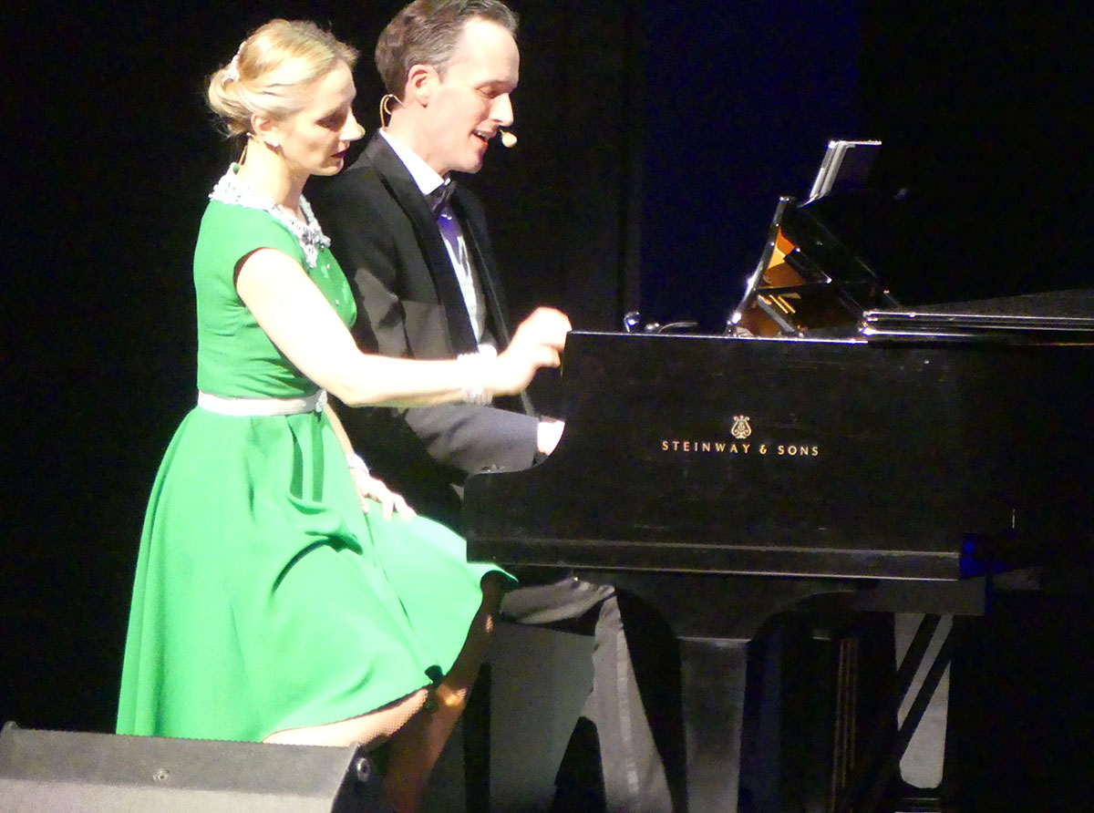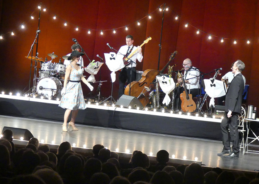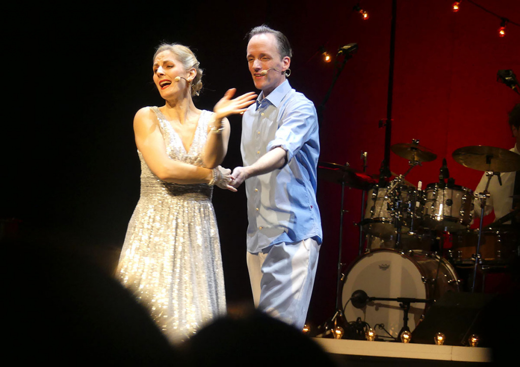 Das Paar aus Österreich, das begleitet wurde vom „Guten-Morgen-Orchester“, einer Combo im besten Sinne, hochmusikalisch und absolut ausgeschlafen, wischte ganz kräftig Staub auf den Partituren. Sodass sogar Helene Fischers wahrscheinlich bestes Lied „Atemlos durch die Nacht“ als Bossa Nova hinreißend gelang. Und Marianne Rosenbergs „Er gehört zu mir“ hielt man, durch das Duo total neu gesetzt, auch aus ohne größere Schmerzen. Die anderen Songs im Programm waren echte Schlager, nahezu Evergreens, weil wir uns gerne an sie erinnern und absolut textsicher sind. So wie bei „Volare, cantare“ oder „Ich brech die Herzen der stolzesten Fraun“, bei „Sugar Baby“ oder „Are you lonesome tonight“ und dem „Das Café Oriental“, bei „Donna Klara“ ebenfalls… Das Narkotikum Sehnsucht – so oft am Alltag gescheitert – wiederholt sich unendlich und mit äußerstem Behagen.