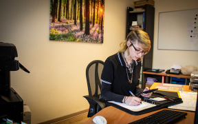 Praktikantin Madison bei der Arbeit im Büro / Foto: Natalie Engel Die Arbeit von Bestattern, auch von Tierbestattern, ist wichtig und erfordert viel Feingefühl. Trauernden die Last von den Schultern zu nehmen, kann sehr erfüllend ...