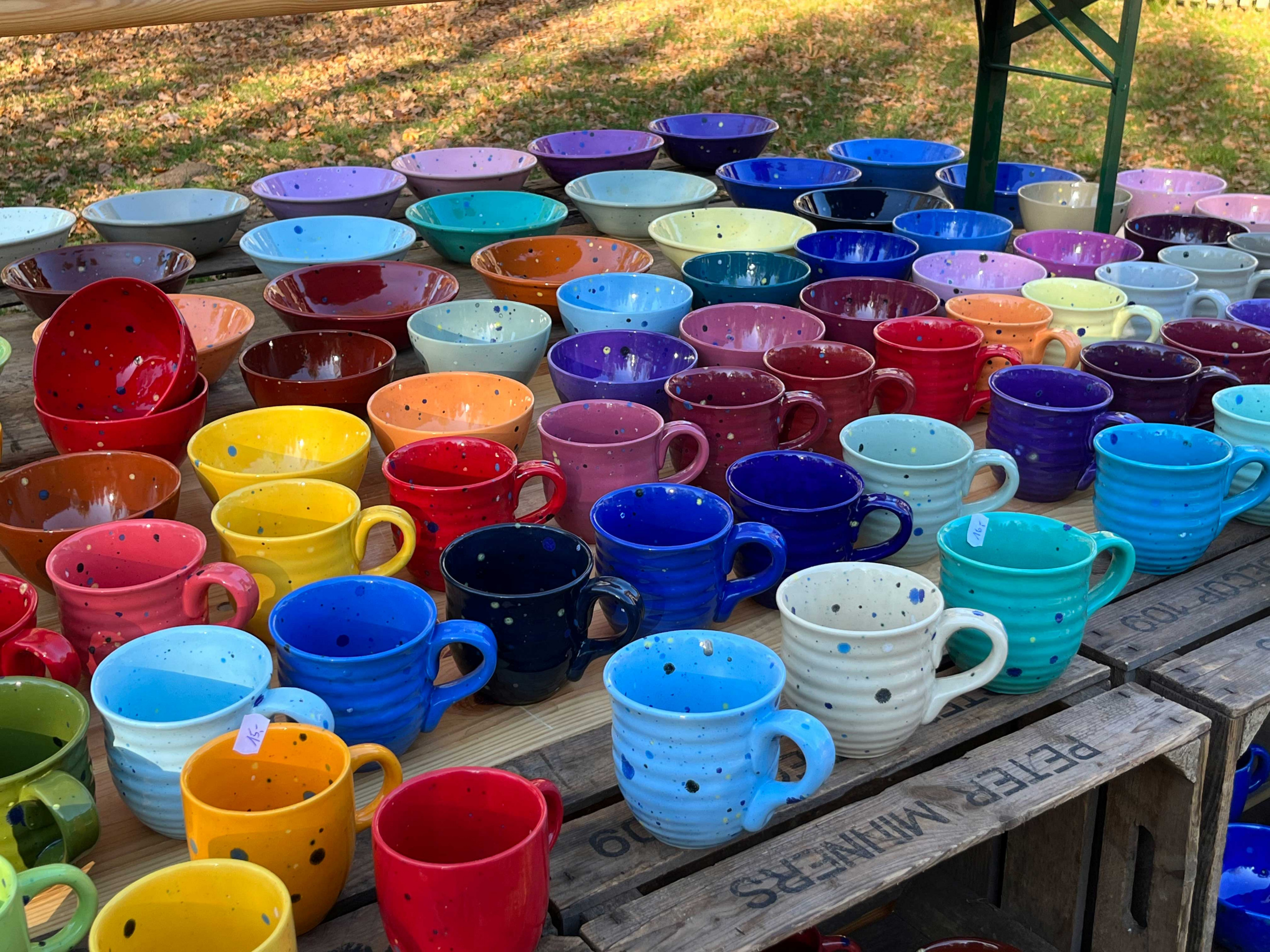 Beim Kunsthandwerkermarkt im Museumsdorf Hösseringen gibt es u.a. bunte Tassen