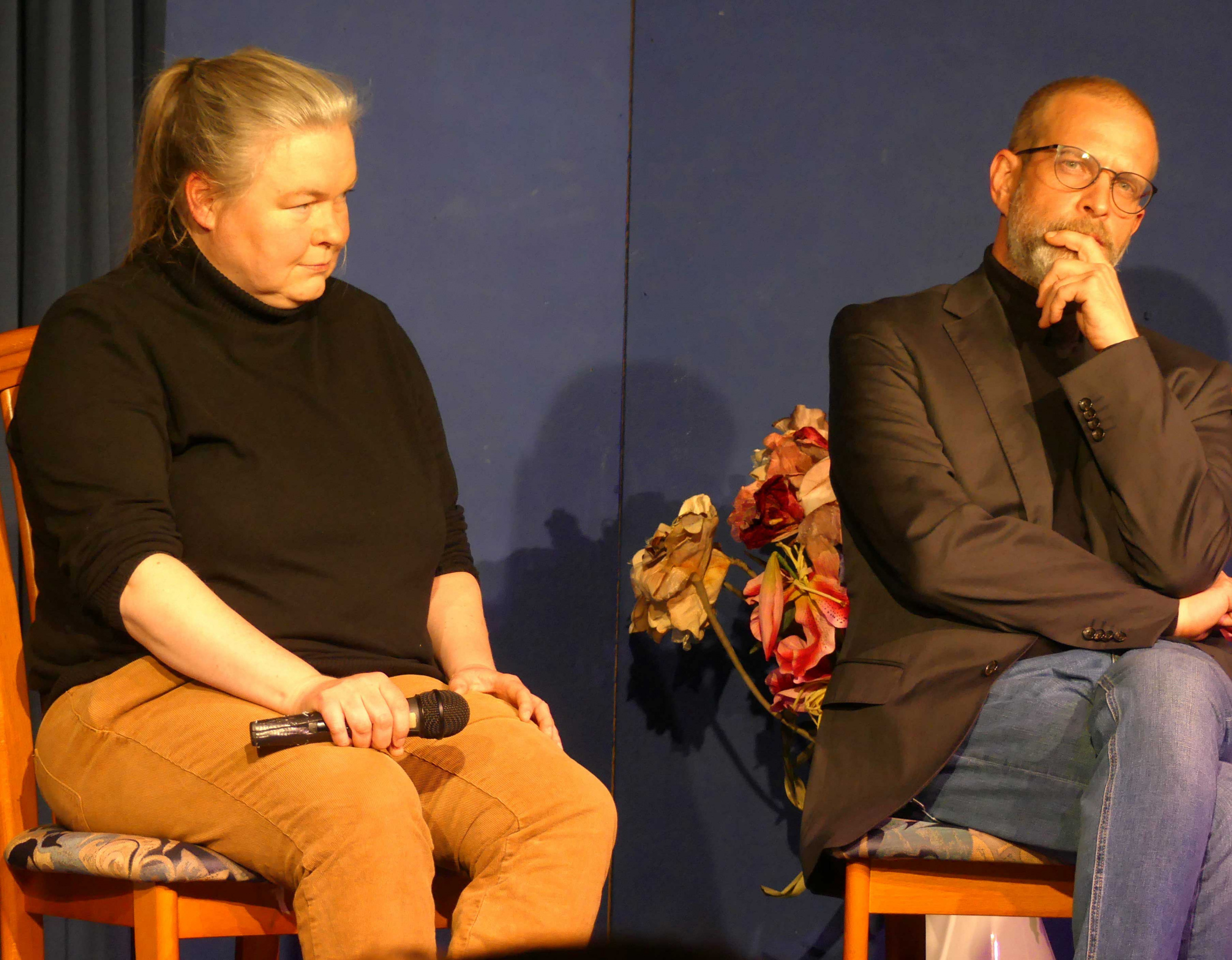 Natürlich wurde auch übers Geld geredet. Das Statistische Jahrbuch 2021 weist für Deutschland Kulturausgaben von mageren 180 Euro pro Kopf aus. Kleiner Lichtpunkt ist vielleicht, dass die Ausgaben von 14,9 Milliarden im Jahr 2025 um 2,5 Milliarden steigen werden; das wären dann gerade 212 Euro pro Kopf… Von den Anwesenden der Talkrunde beschwerte sich keiner sehr laut. Und niemand mochte auch in ein Bashing des Landkreises einstimmen, obgleich es dafür allen Grund gäbe, wie die staunenden Zuhörer:innen erfuhren (Verweigerung von kommunalen Ko-Finanzierungen, die einen Antrag auf Fördermittel erst ermöglichen). Einig waren sich am Ende aber alle, dass Kulturausgaben raus müssen aus der Rubrik „freiwillige Leistung“. Es war aber auch unvorstellbar, dass in diesem Saale einer aufgestanden wäre und sagte: Kultur braucht doch kein Mensch. So gesehen war es ein einfacher Abend der Übereinkunft.