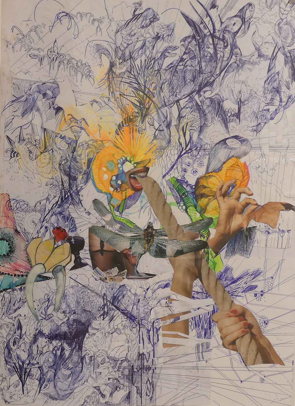 Mit dieser umfangreichen Ausstellung, die Zeichnungen (mit Collageanteil), Dreidimensionales und Arbeiten in Öl präsentieren, will die Künstlerin sich und anderen beweisen, dass sie „nicht Nichts ist“. Kein Mensch käme auf diese Idee, diese kluge, hyperaktive, welterfahrene Frau ein „Nichts“ zu nennen. Aber die (Kunst)Welt tickt anders, und sie hat wohl auch das erfahren müssen. – Geboren im Jahr 1978 in Hamburg legt Anna Genger dort das Abitur ab. Sie glaubt dem Satz, mit Kunst könne man kein Geld verdienen und beginnt eine Schneiderlehre, weil sie nun Modedesign zu ihrem Ziel macht. Sie bewirbt sich an der berühmten „Slade School of Fine Art“ in London, wird genommen und schwärmt von den „Foundation Studies“, wo sich die Studenten ausprobieren können in allen Richtungen. Sie ist Jahrgangsbeste, erhält aber den Bescheid, dass ihr die Freie Kunst wohl eher läge. Daraufhin bewirbt sie sich selbstbewusst am Royal College of Art und studiert Kunst. Sie sagt es wie nebenbei, dass sie auch dort Jahrgangsbeste wird. Als sie das Studium im Masterstudiengang 2007 beendet, hat sie schon seit zwei Jahren einen Vertrag mit einer Galerie in Berlin, ist deren „Wunderkind“ und sorgt für traumhafte Umsätze. Wie sich herausstellen wird, ist der Vertrag ein Knebelvertrag…