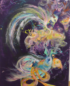 In einem Museum in Prag war auf einem Schild zu lesen: „Don`t touch the art, the art touch you.“ Das ist eine schöne Verbindung zwischen dem verbotenen Haptischen in einer Galerie und der emotionalen Ergriffenheit, die ein bloßes Davorstehen und Schauen auszulösen in der Lage sind. Natürlich, wir müssen es zulassen. Ein Titel bei Anna Genger heißt „Es sind noch Lieder zu singen jenseits der Menschen“. Darauf bunte Vögel. Vielleicht hat der Titel auch etwas Apokalyptisches, denn die Vögel werden hoffentlich noch singen, wenn es die Menschheit nicht mehr gibt; wenn sie sich selber ausgerottet hat. Derzeit wird sehr intensiv an solchen Szenarien gearbeitet…