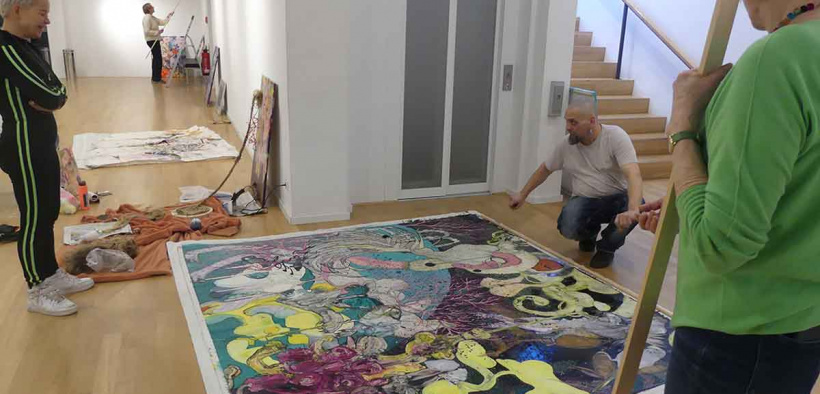 Auf jeden Fall aber ist man geneigt, sich in all den Glanz, den Glamour, den Gaudi hineinzustürzen, die in den Bildern der Hamburger Künstlerin wohnen, die zudem der Lust am Erfinden huldigen, Eleganz und Unordnung gleichermaßen sind. Die eine hybride malerische Montage von Bildfragmenten und reich an Referenzen sind. Sympathisch ungeordnete Temperamentsspuren – zu sehen bis zum 12. April 2026 in der Galerie des Kunstvereins im Theaterkeller. Vernissage ist am 07. März 2026, 17 Uhr.